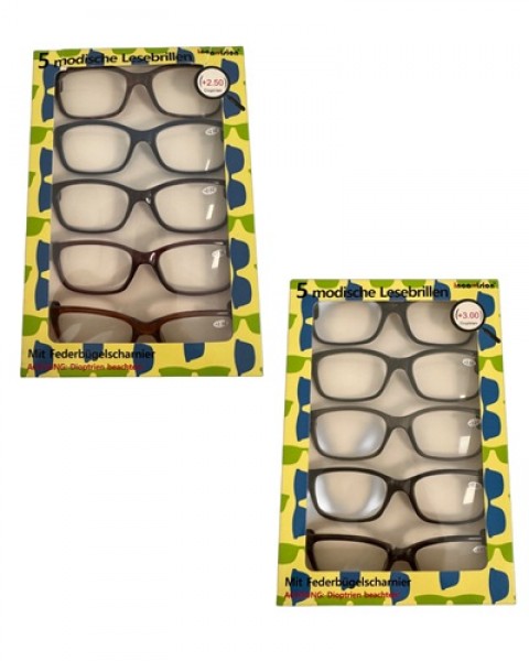 R Lesebrille 5er Set mit Federscharnier Inca-VisionDioptrien +1,5 / +2,0 / +2,5 / +3,0