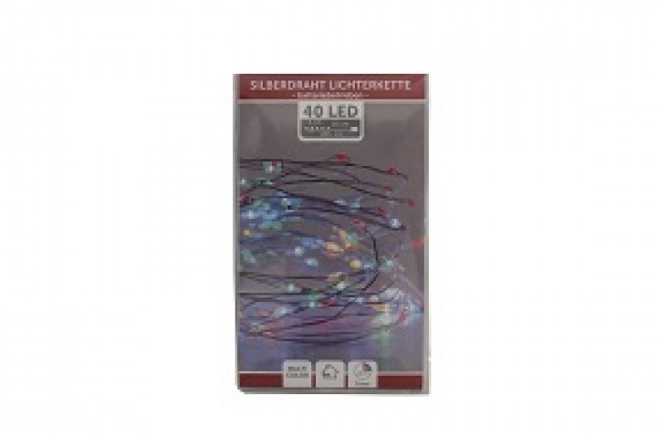 W Lichterkette Draht 40er bunt mit Timer, batteriebetriebenLichterkettenlänge: 195 cm