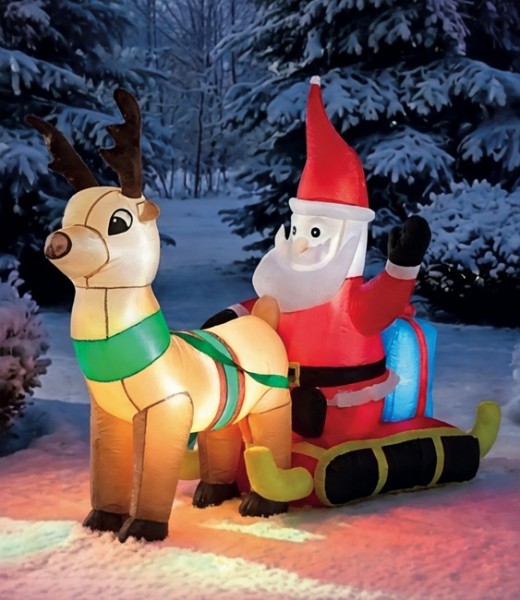 W Rentierschlitten mit Weihnachtsmann, mit LED, H x 130 cm, selbstaufblasbar