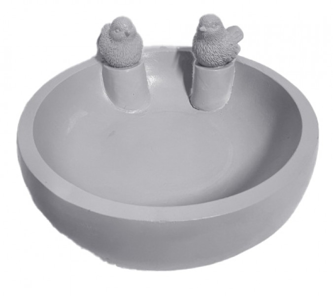 G Vogeltränke mit 2 Vögeln Ø 34 cm, hellgrau