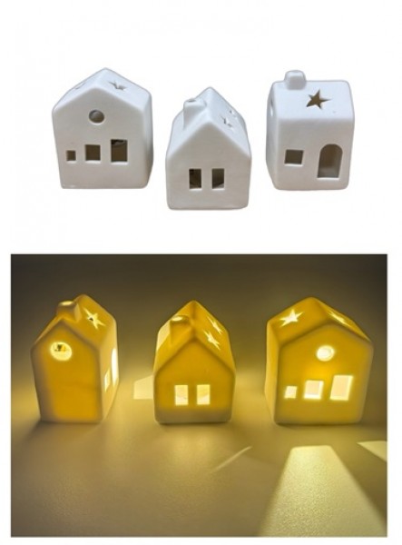 W Dekohaus aus Porzellan LED, H x 6,5 cm, weiß, 3 Modelle