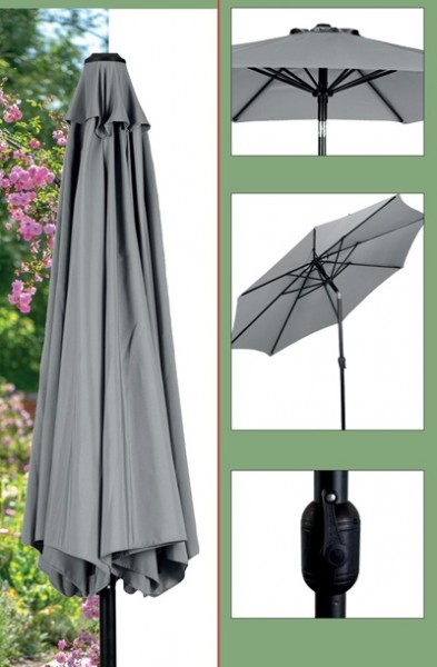 Sonnenschirm mit Kurbel und Kippfunktion Ø 3 m, grau
