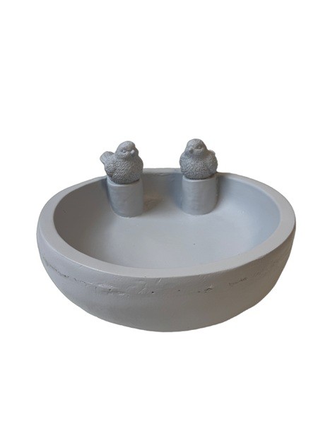 G Vogeltränke mit 2 Vögeln 34x34x16 cm, hellgrau