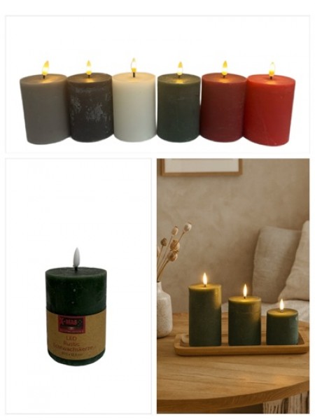 Kerze mit Rillen LED Echtwachs Ø 7,5 x 12,5 cm, flackernd mit Timer in 4 FarbenRustic-Kerze mit Rillenrelief
