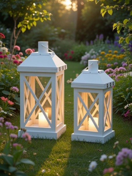 W Laterne aus Holz 2er Set, weiß